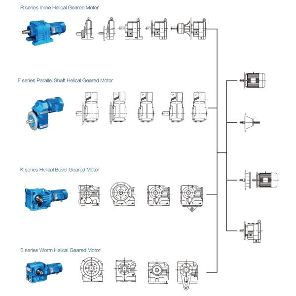 | Solid shaft with flange output type | SF37 reducer, SF47 reducer, SF57 reducer, SF67 reducer, SF77 reducer, SF87 reducer, SF97 reducer |